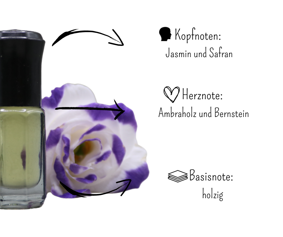 Die Kopfnote besteht aus Jasmin und Safran, die dem Duft eine blumige und zugleich würzige Note verleihen.