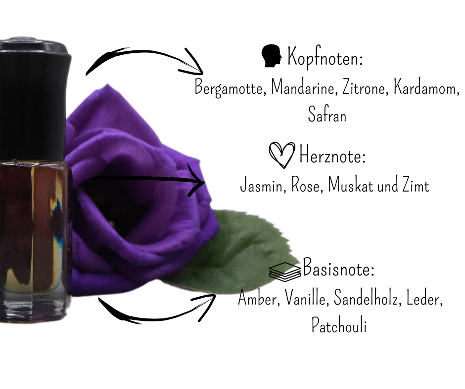 Die Basisnoten aus Amber, Vanille, Sandelholz, Leder und Patchouli diesen einzigartigen Duft ab und schenken ihm seine unverwechselbare Note.