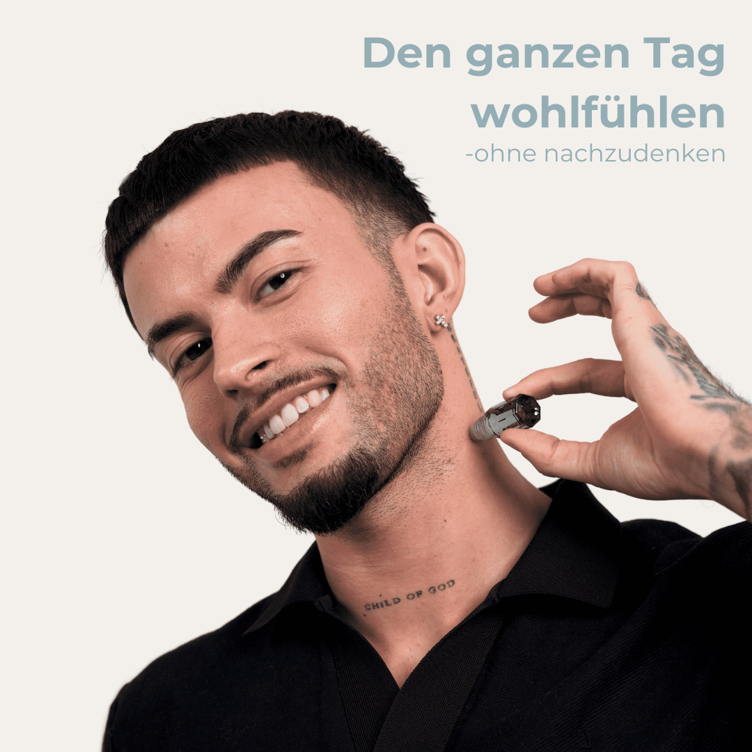 Kennst du das Gefühl, wenn dein Duft schon verschwunden ist, bevor dein Tag richtig startet? Und du dich dann manchmal sogar fragst, ob du vielleicht Muffelst? Mit dem Duftroller musst du dir darüber keine Sorgen mehr machen. Klein, praktisch und immer dabei – dein täglicher Begleiter für Frische und Wohlbefinden, egal wo du bist. Du kannst den Duftroller zu jeder Zeit unauffällig & schnell anwenden und du riechst sofort wieder gut.
