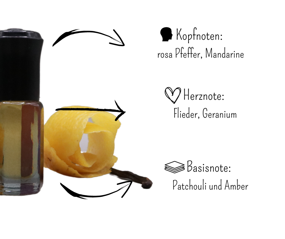 Kopfnote aus rosa Pfeffer und Mandarine, die mit einer