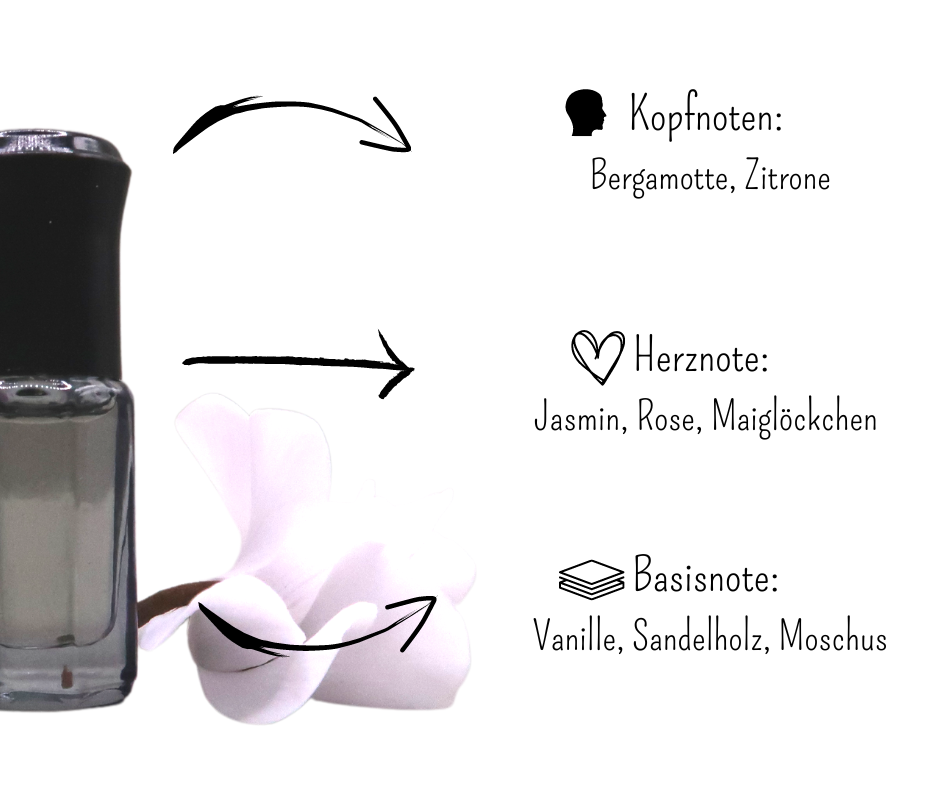 Herznote: Geranie, Neroli, Jasmin, Sandelholz